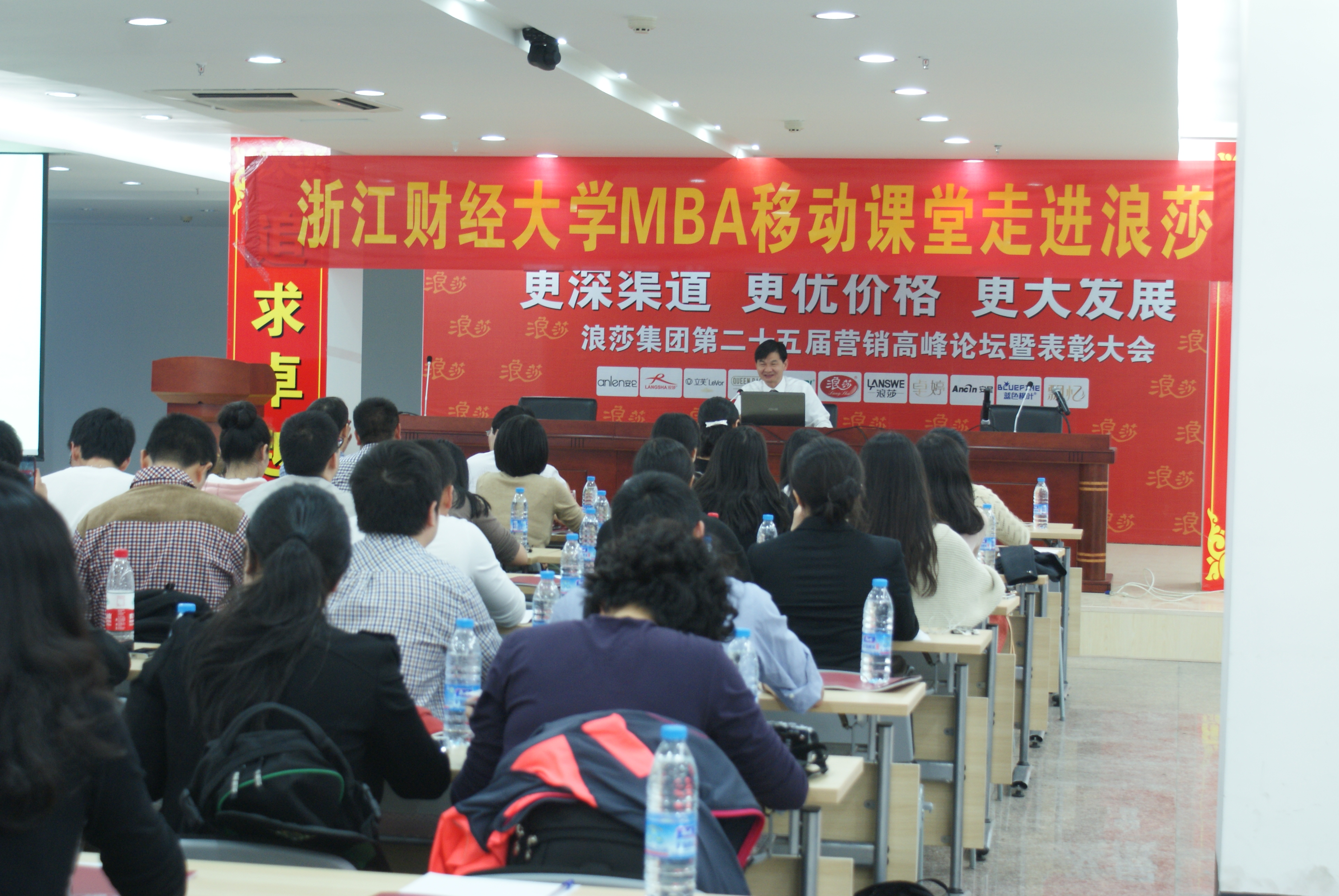 浙江財經大學MBA移動課堂走進浪莎,浙江財經大學MBA移動課堂的導師以及學員來到浪莎集團,浪莎總裁翁榮弟親自接待,并進行了熱情洋溢的演講。據悉,本期MBA移動課堂的學員均來自各個銀行、企業及事業單位的中層以上管理人員,他們不僅具備專業的理論知識,更加擁有豐富的實踐經驗,是相關行業或領域內出類拔萃的人才。在翁總裁演講結束后,老師及學員就浪莎管理及浪莎小額貸款運作提出了一些問題一同探討。