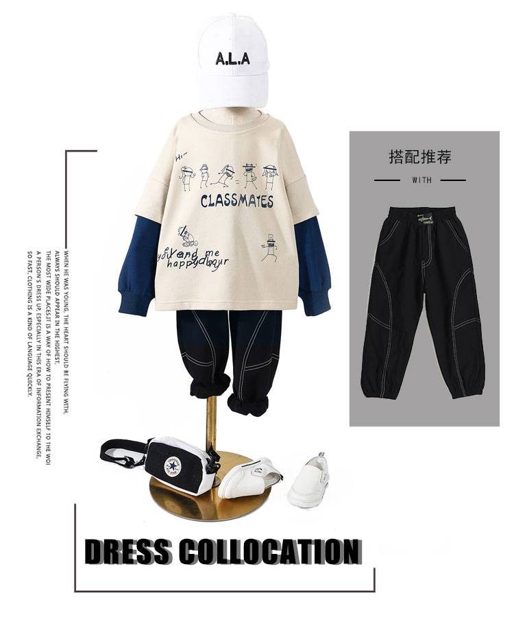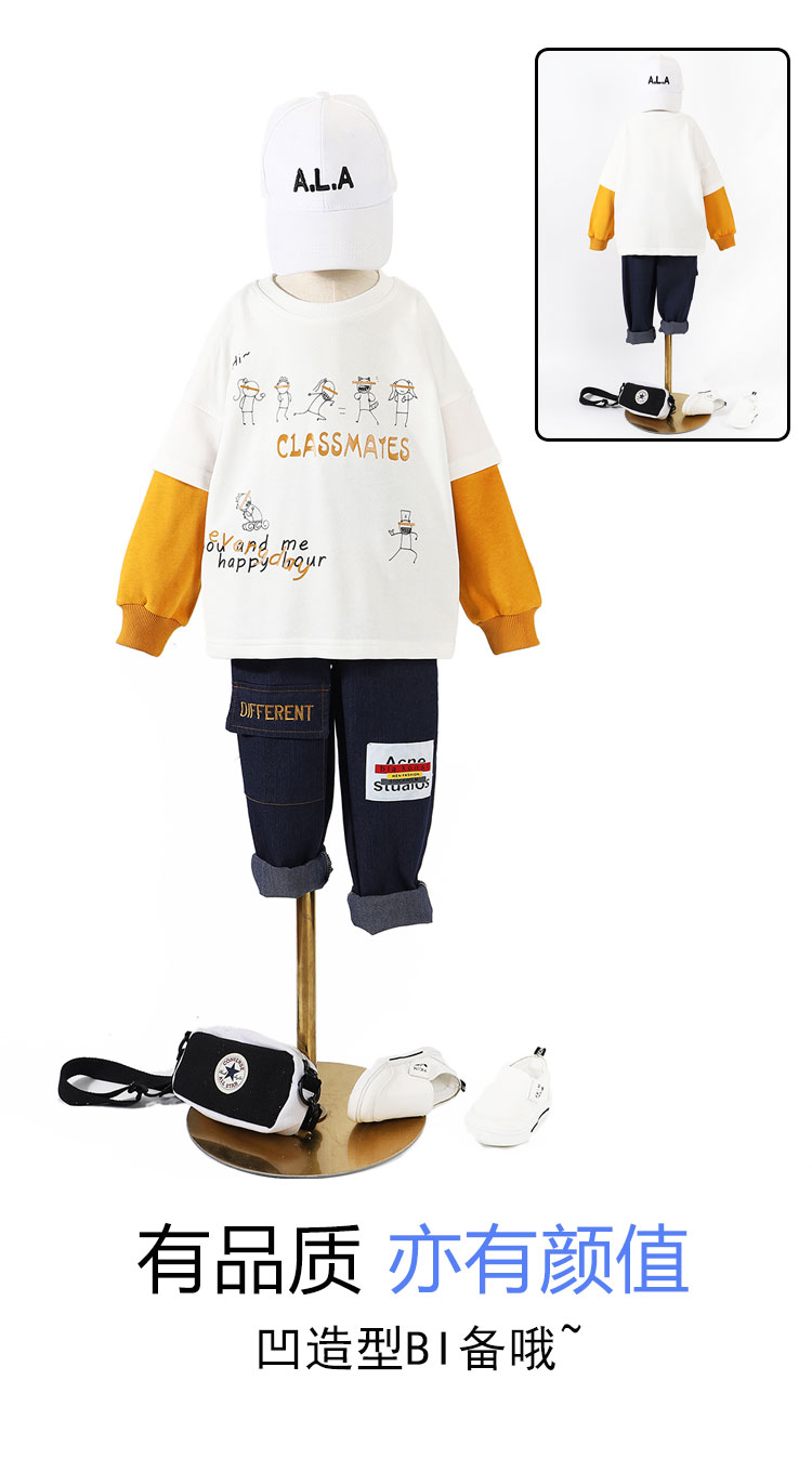 浪莎童裝男童衛衣兒童春秋款長袖2021新款中大童打底衫韓版潮t恤