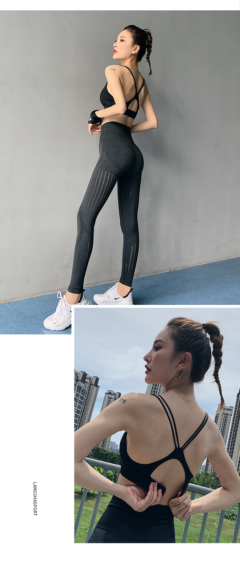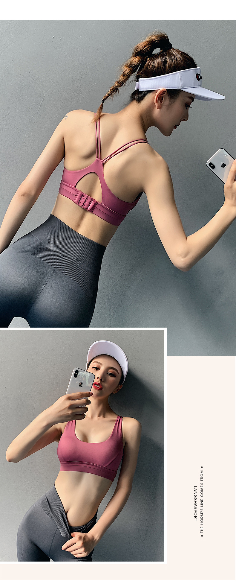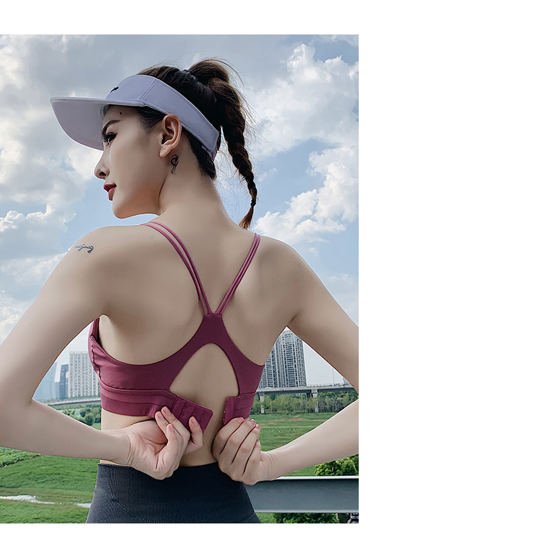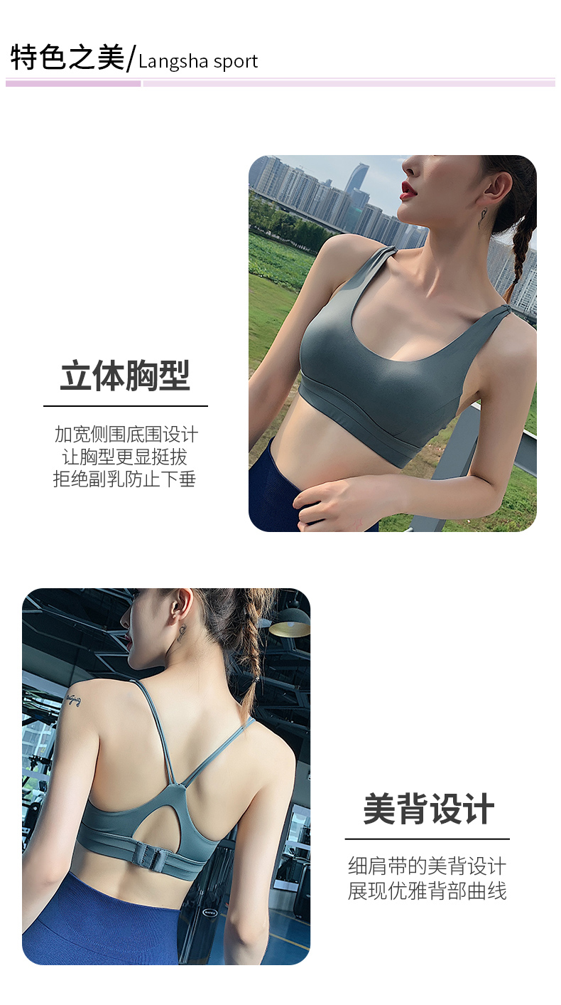 浪莎運(yùn)動(dòng)內(nèi)衣女防震跑步聚攏定型搭扣瑜伽背心細(xì)肩帶美背健身文胸