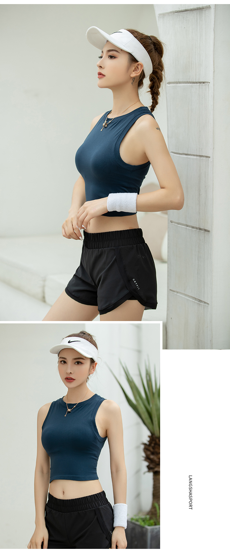 浪莎運動背心女緊身露臍無袖跑步瑜伽服上衣罩衫薄款健身速干T恤