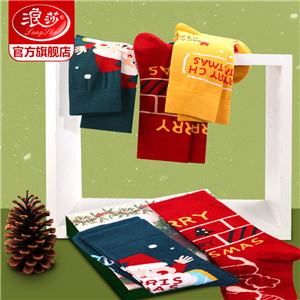浪莎圣誕襪子女中筒襪秋冬季可愛本命年紅襪子圣誕節(jié)禮盒加厚棉襪